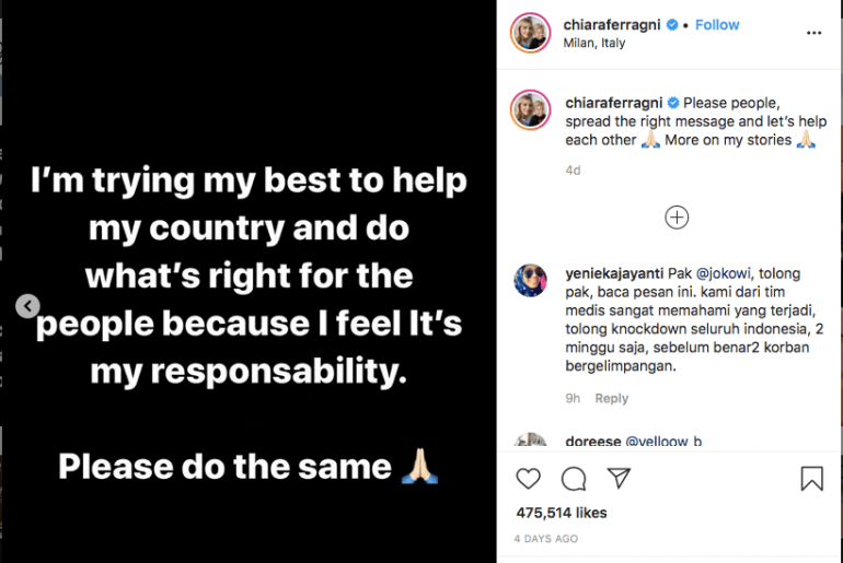 Nu știam cine este Chiara Ferragni până când am văzut un story la Anca despre cum o lume întreagă se mobilizează pentru tragedia care a lovit puternic Italia datorită ei. În momentul în care scriu aceste rânduri, campania Chiarei Ferragni a ajuns la 4.2 milioane de euro, donație susținută de 197k oameni și deja au achiziționat cele necesare pentru San Raffaele Hospital Milano, unul dintre epicentrele luptei salvării de vieți omenești din Italia. În prima zi…